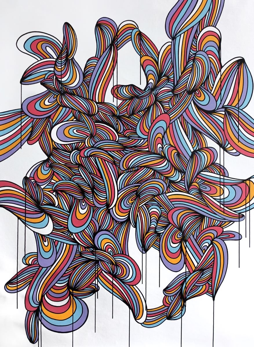 KEF! Simon Röhlen Chevalier | Whispering Nebulq Drift #1, 2025 | Ink and acrylic on canvas | 50×70 cm