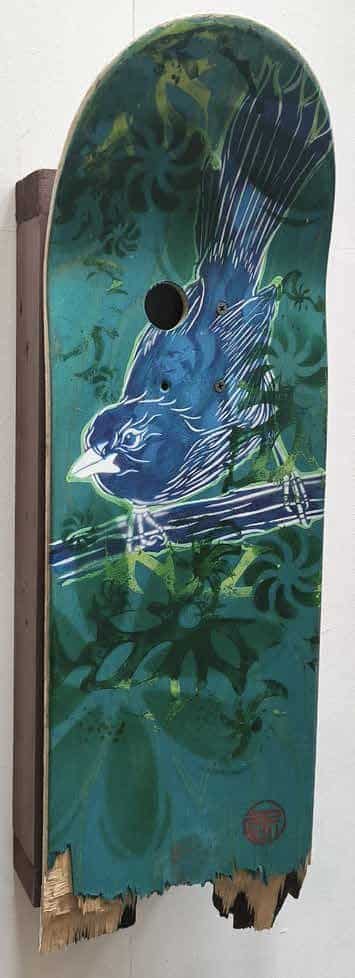 Stew | Skate, 2024 | Pochoir et tampons acrylique sur bois | 21×60 cm