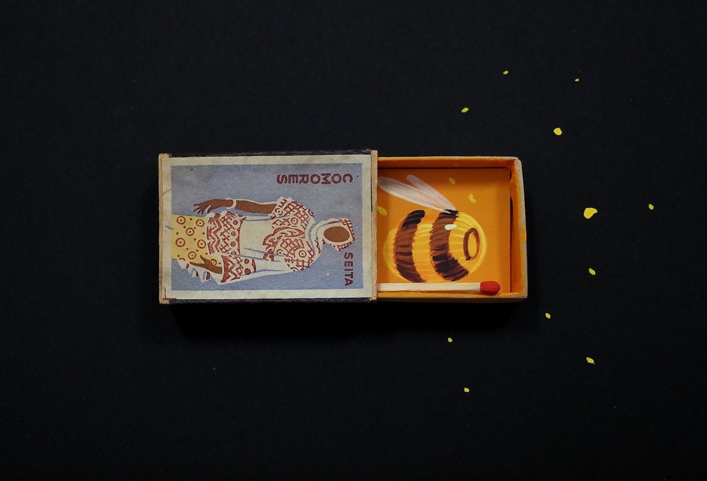 STOM500 | Light my fire in Comores, 2023 | Acrylique sur boĆ®te d’allumettes | 18×15 cm