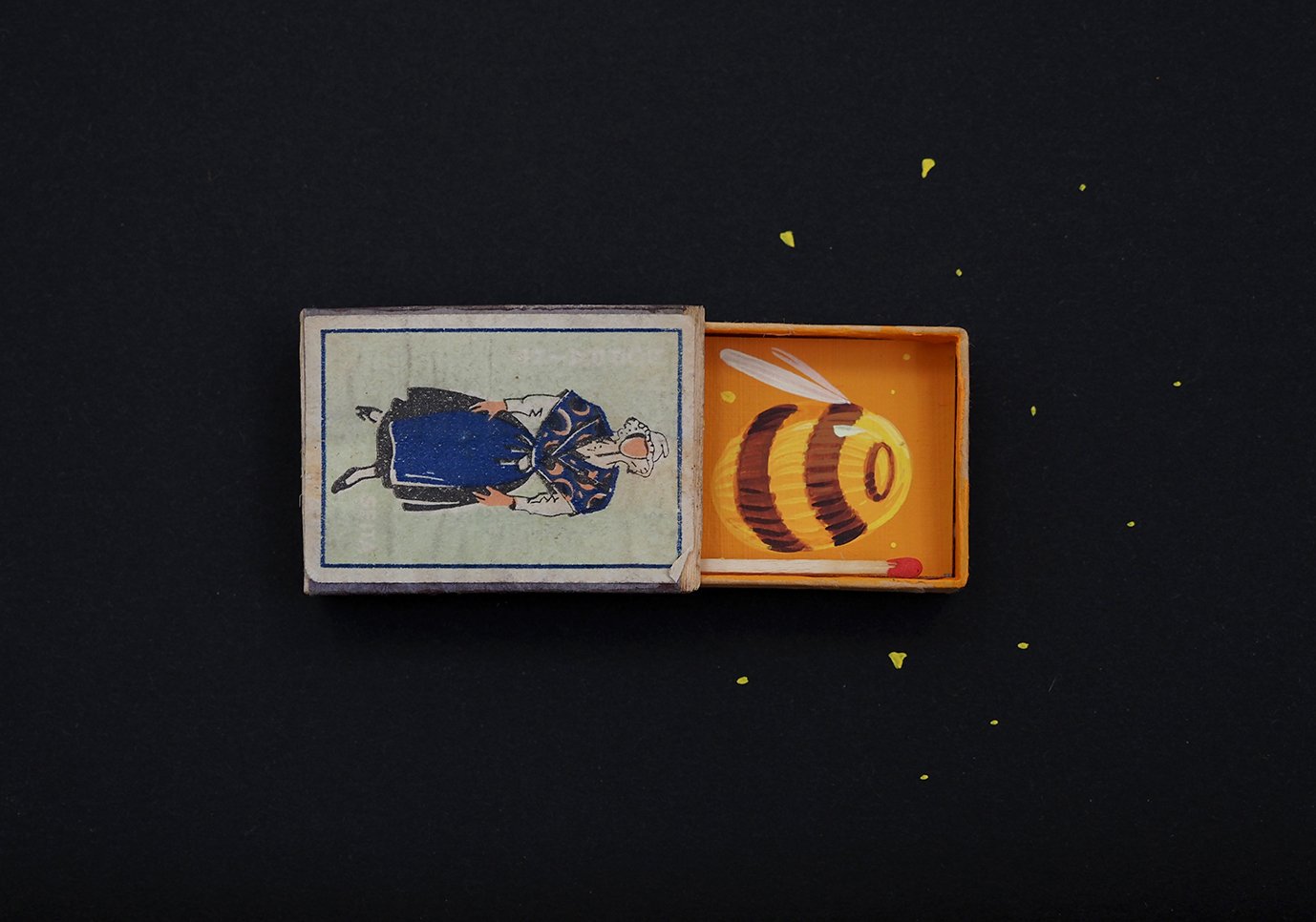 STOM500 | Light my fire in Lorraine, 2023 | acrylique sur boite d’allumettes | 18×15 cm