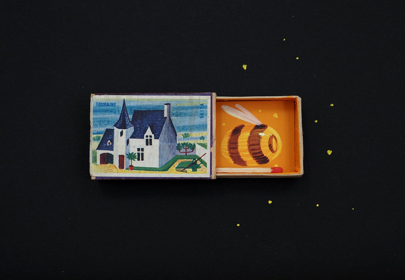 STOM500 | Light my fire in Touraine, 2023 | Acrylique sur boĆ®te d’allumettes | 18×15 cm