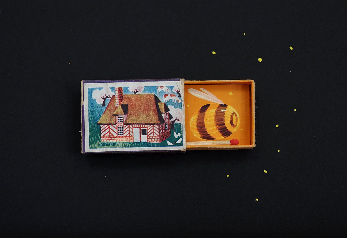 STOM500 | Light my fire Normandie, 2023 | Acrylique sur boĆ®te d’allumettes | 18×15 cm