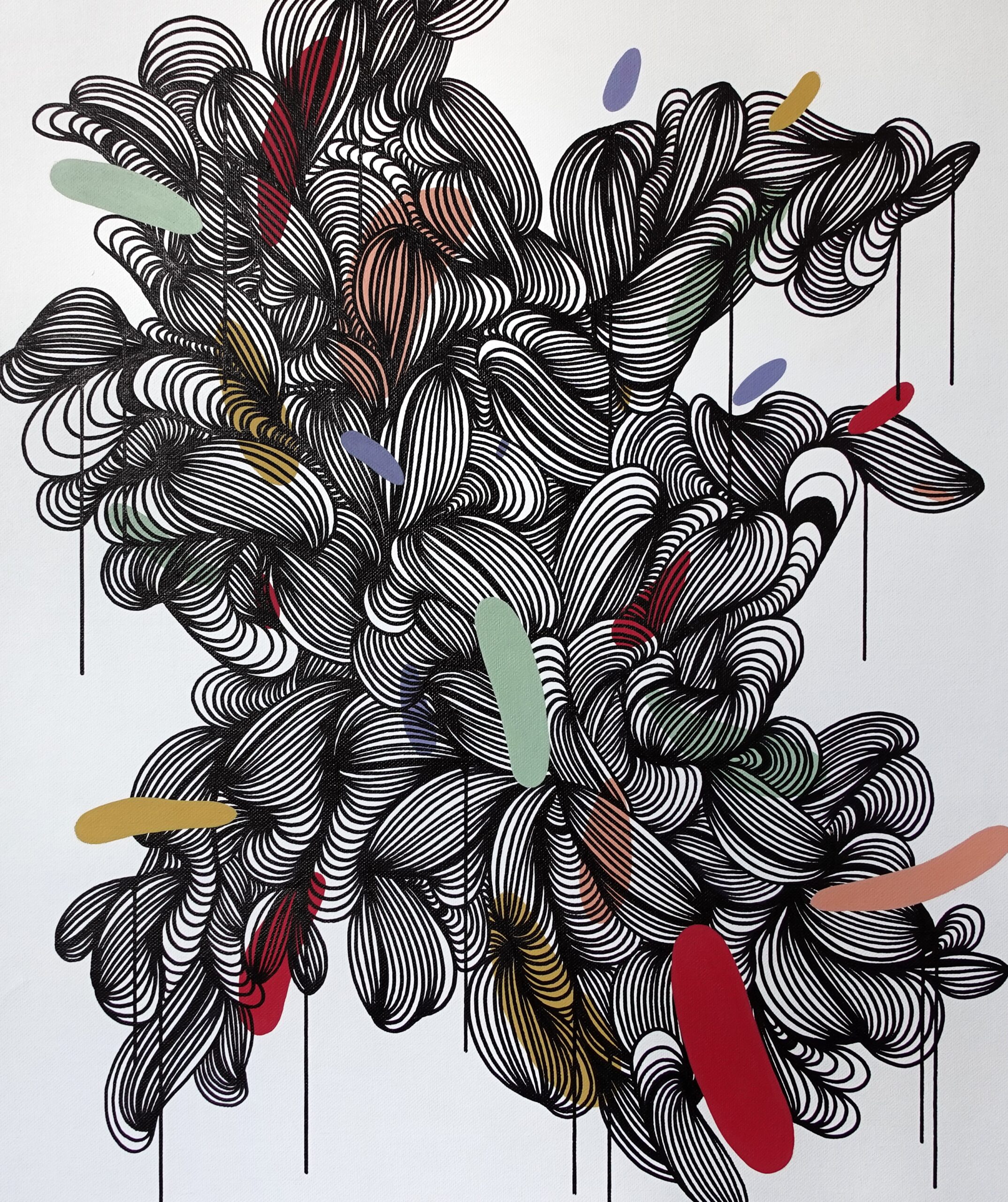 Splashes of silence #2, 50 x 40 cm, ink and acrylic on canvas, 2025