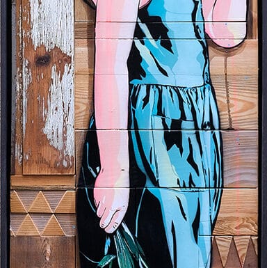 Jana, originally from Austria, and Jean Sebastien, originally from France, form a talented couple of artists, both in the city and on stage, specializing in street art. They now live in Salzburg, Austria, after spending some years in Madrid and Paris. Inspired by constantly evolving architecture, Jana and JS paint urban landscapes, simple architectural details, and portraits of city dwellers in games of mirrors, transparency, and mise en abyme. They use the stencil technique, based exclusively on their photographic work.