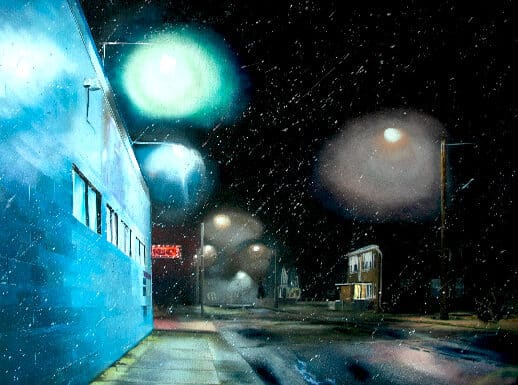 It all started for Christophe-Gilbert Lequarré (alias Spyk) in 1990 with a trip to New York. He discovers graffiti by criss-crossing the streets of « the big apple », which inspires his style. Back in Belgium, he will develop his artistic style and use spray paint in projection to create canvases that give a photographic rendering of his work. Through his « American-style » landscapes, he « spontaneously » fits into the tradition of American realism à la Hopper.