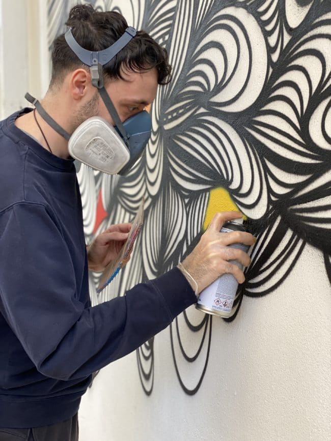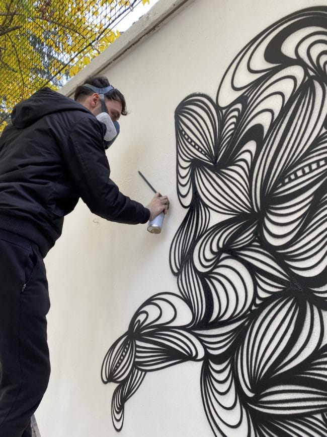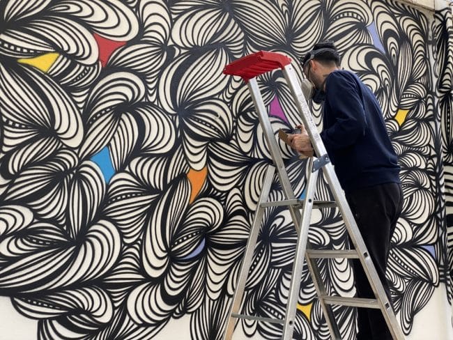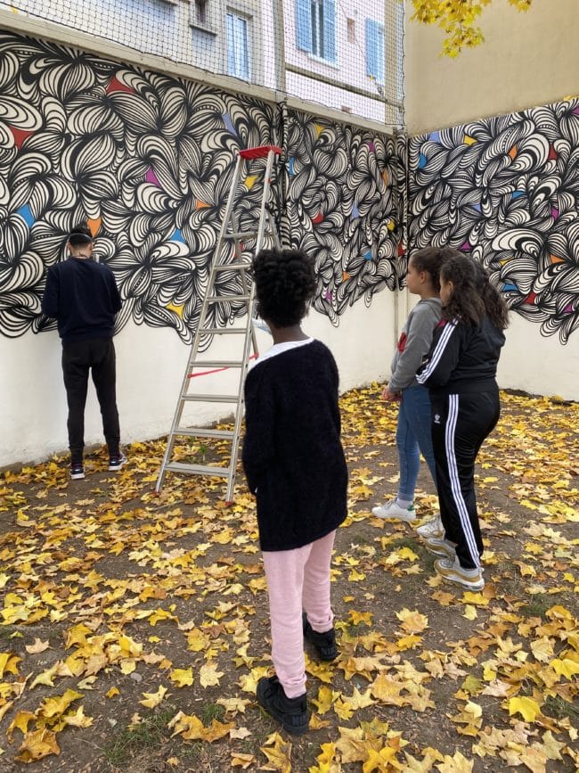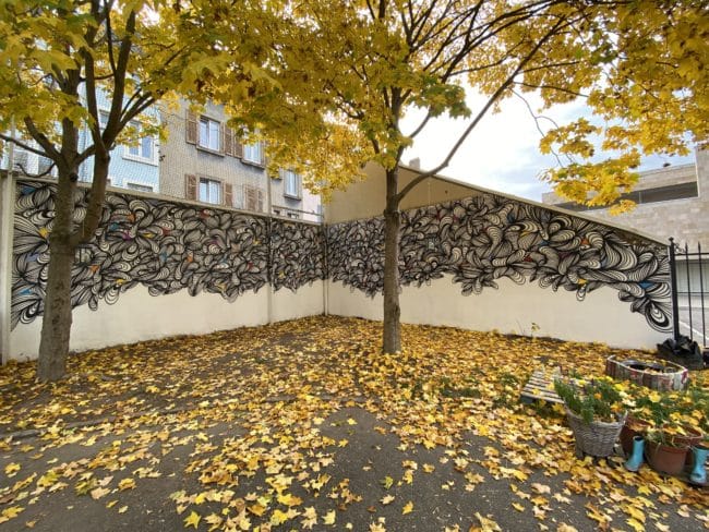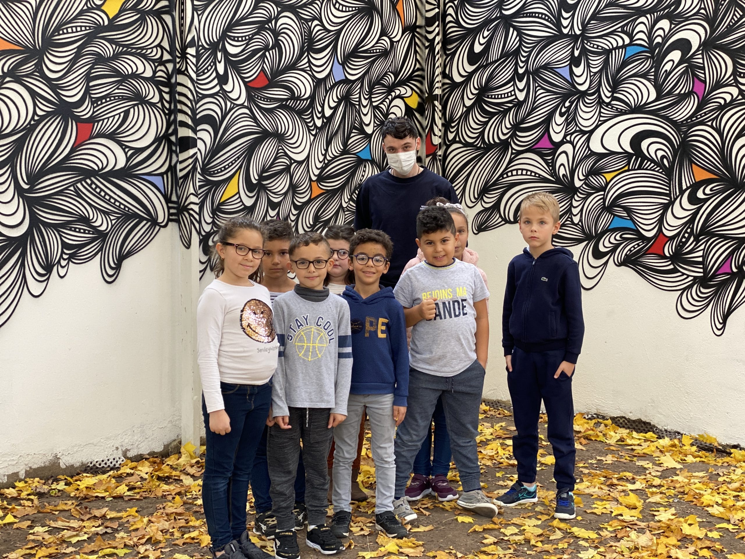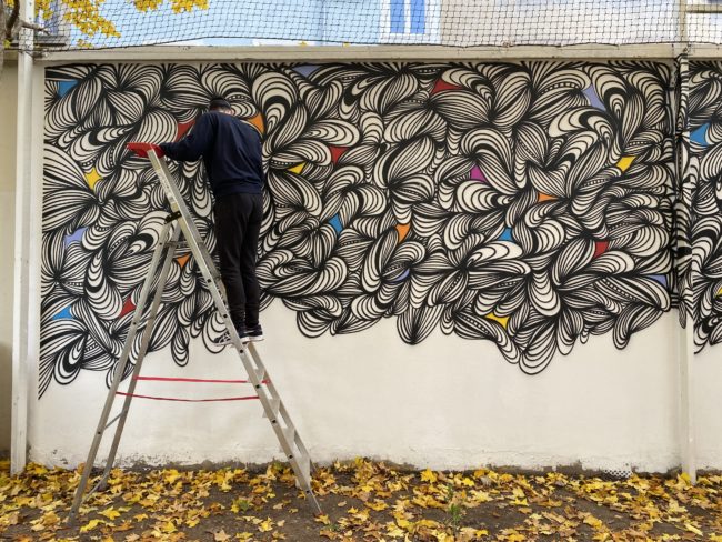 Réalisation de la galerie Orlinda. Kef! a généreusement offert une fresque extérieure aux enfants du Centre Social et Culturel Papin de Mulhouse en octobre 2020.
