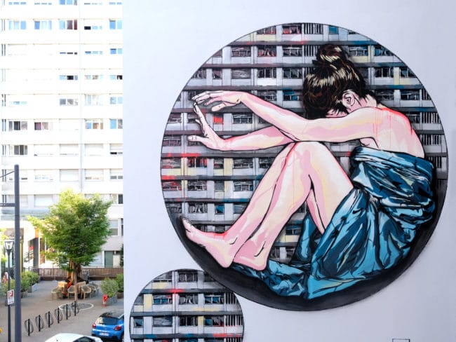 Fresque de 15 mètres de haut réalisée au centre ville de Mulhouse par Jana & Js, mise en oeuvre par la Galerie Orlinda Lavergne, en partenariat avec la copropriété de la résidence Boston, la ville de Mulhouse et la société Sodico.