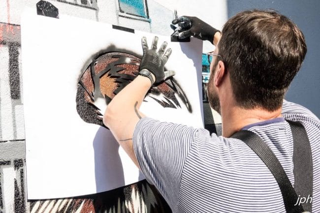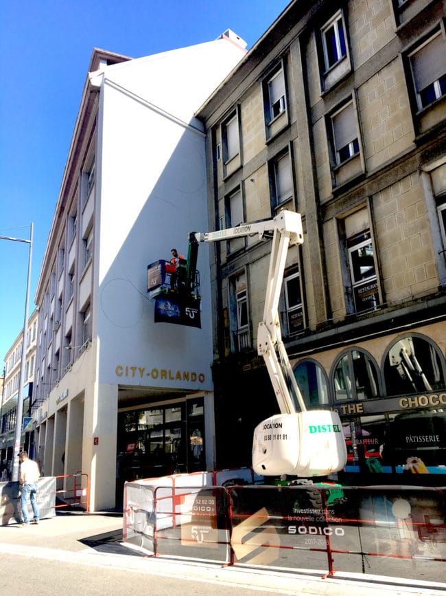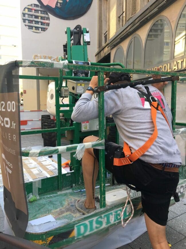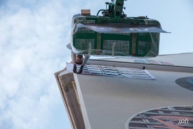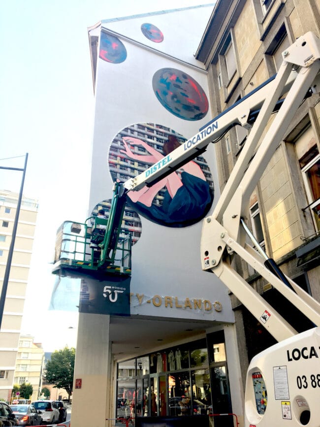 Fresque de 15 mètres de haut réalisée au centre ville de Mulhouse par Jana & Js, mise en oeuvre par la Galerie Orlinda Lavergne, en partenariat avec la copropriété de la résidence Boston, la ville de Mulhouse et la société Sodico.
